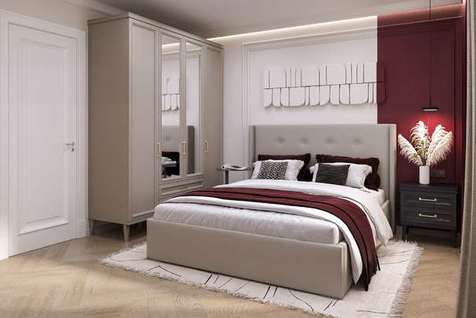 Вы можете самостоятельно выбрать размер и комплектацию шкафов и кровати;