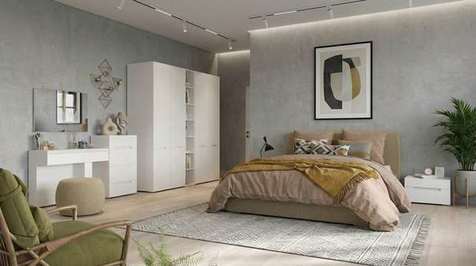 Спальня в современном минималистичном стиле. Такая мебель универсальна и подойдет интерьерам в стилях эко, скандинавский и минимализм.